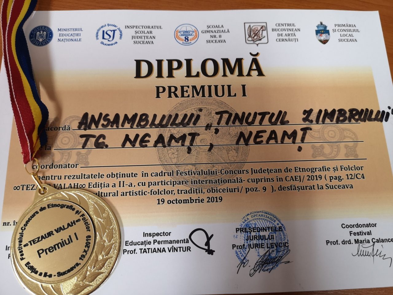 Ansamblul Folcloric ”Ținutul Zimbrului” Târgu Neamț premiul I la Festivalul-concurs de Etnografie și Folclor TEZAUR VALAH de la Suceava