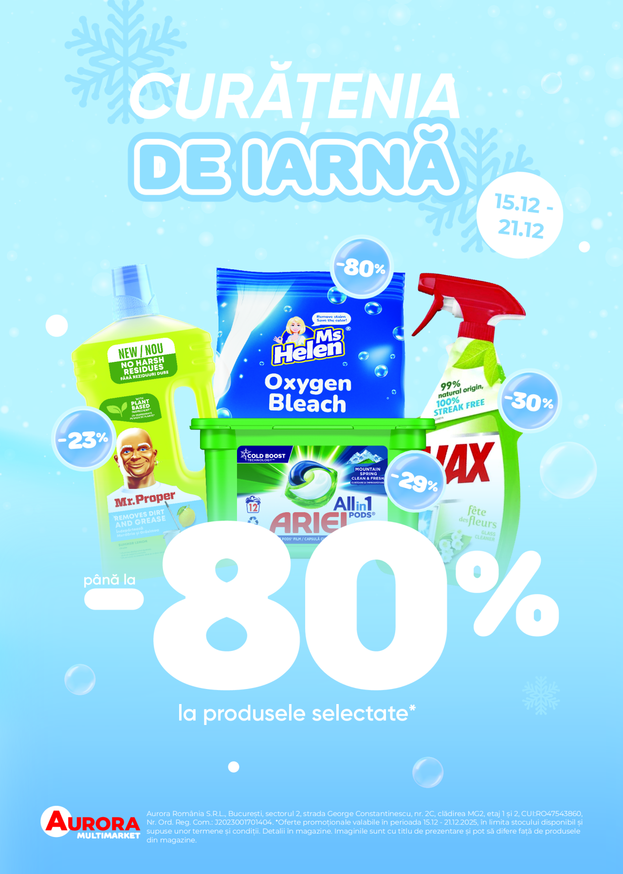 Decembrie aduce din nou atmosfera magică a sărbătorilor în cele 64 de magazine Aurora Multimarket, iar clienții sunt invitați să se bucure de cele mai mari campanii ale anului. De la decorațiuni de Crăciun și jucării pentru cei mici, până la produse de curățenie și articole de înfrumusețare, luna decembrie vine cu valuri de discounturi spectaculoase, perfecte pentru pregătirea casei și a momentelor petrecute alături de cei dragi.
