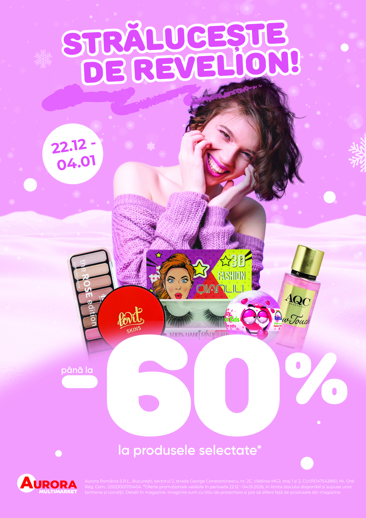 Între 22 decembrie și 4 ianuarie, Aurora Multimarket continuă surprizele cu o campanie dedicată frumuseții și momentelor speciale ale finalului de an.