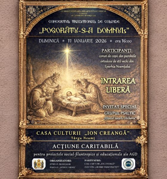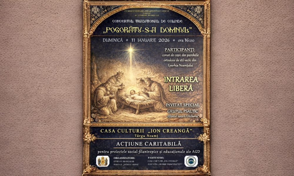 Cu bucurie duhovnicească vă invităm la Concertul Tradițional de Colinde „Pogorâtu-s-a Domnul” Eparhia Neamțului, în parteneriat cu Asociația Graiuri Duhovnicești,...