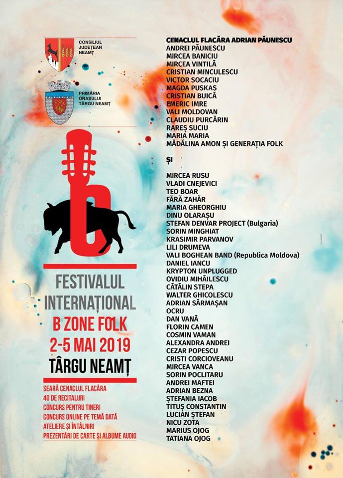În perioada 2 – 5 mai 2019, Consiliul Județean Neamț și Primăria orașului Târgu Neamț, organizează Festivalul Internațional de Muzică Folk „B ZONE FOLK ROMÂNIA”, ediția 2019.
