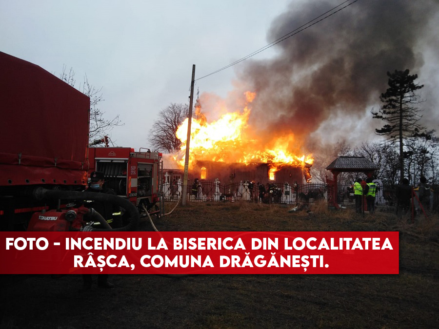 FOTO – Incendiu la biserica din localitatea Râșca, comuna Drăgănești.