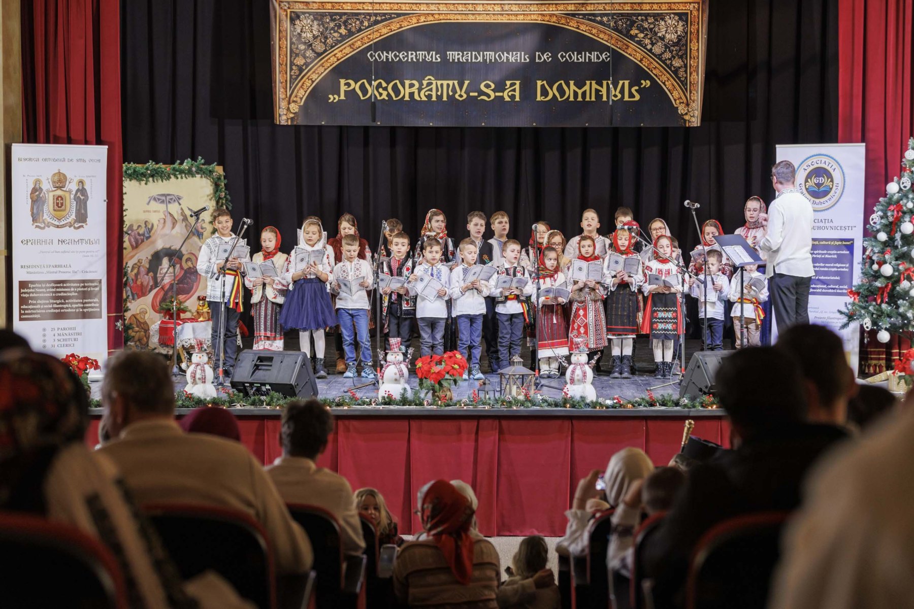 Evenimentul a reunit 7 grupuri de colindători din parohiile Eparhiei Neamțului, care au adus pe scenă frumusețea colindului tradițional românesc, alături de invitatul special – Grupul Psaltic „Sfântul Ierarh Glicherie”, a cărui interpretare a impresionat prin profunzime și trăire duhovnicească. Publicul a răspuns cu aplauze îndelungi, trăind fiecare moment într-o atmosferă de pace, bucurie și comuniune.