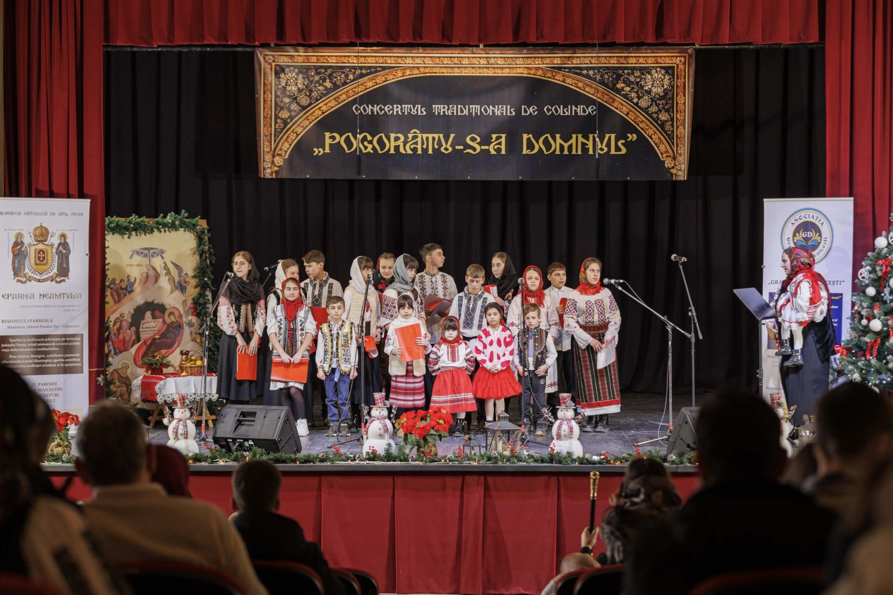 Ieri, 11 ianuarie 2026, Sala Casei Culturii „Ion Creangă” din Târgu Neamț a fost neîncăpătoare, găzduind prima ediție a Concertului Tradițional de Colinde „Pogorâtu-s-a Domnul”, un eveniment de amploare organizat de Eparhia Neamțului, în parteneriat cu Casa Culturii „Ion Creangă” și Asociația „Graiuri Duhovnicești”. Atmosfera de sărbătoare, emoția colindelor și entuziasmul publicului au transformat seara într-un adevărat succes cultural și spiritual.