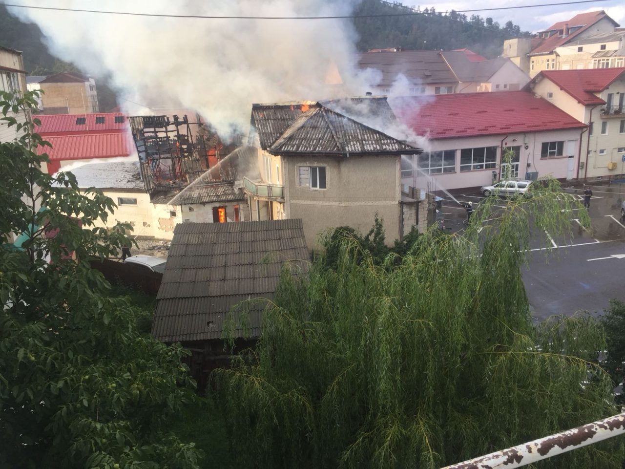 La sosirea pompierilor, incendiul se manifesta la acoperiş, iar în timpul intervenţiei, unei femei care locuieşte în zonă i s-a făcut rău.