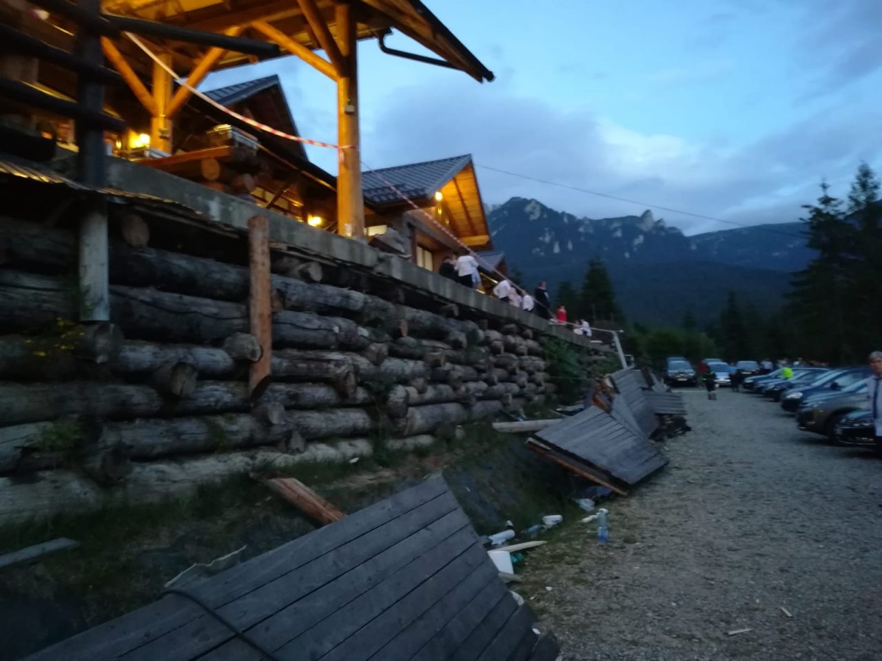 Scenele de groază s-au derulat duminică seară la o pensiune din staţiunea Durău din judeţul Neamţ, unde avea loc o nuntă. La un moment dat, balustrada terasei pe care se aflau mai mulţi invitaţi s-a rupt, iar oamenii au căzut, unii peste alţii, de la aproximativ doi metri. Imediat după ce s-a dat alarma, zona a fost împânzită de salvatori.
