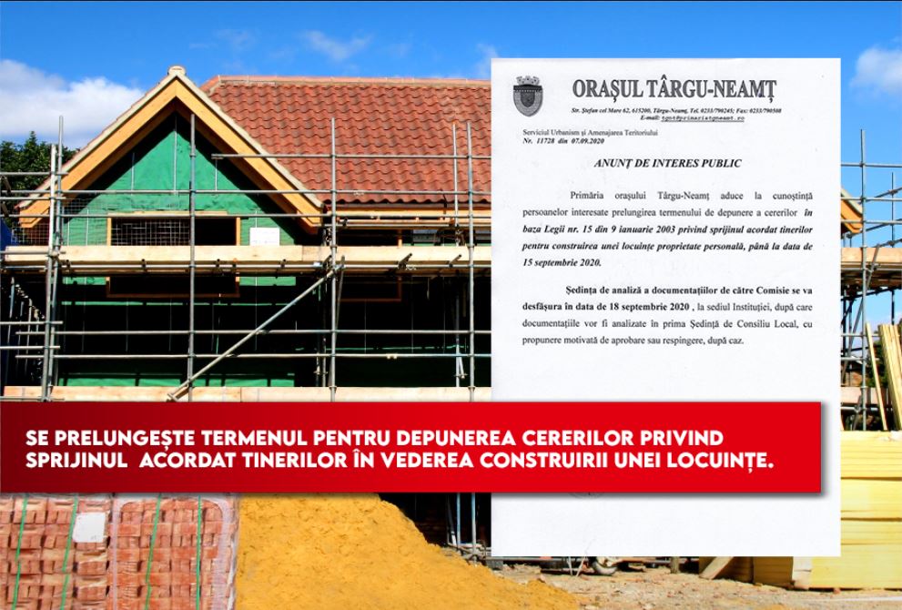 Se prelungește termenul pentru depunerea cererilor privind sprijinul acordat tinerilor în vederea construirii unei locuințe.