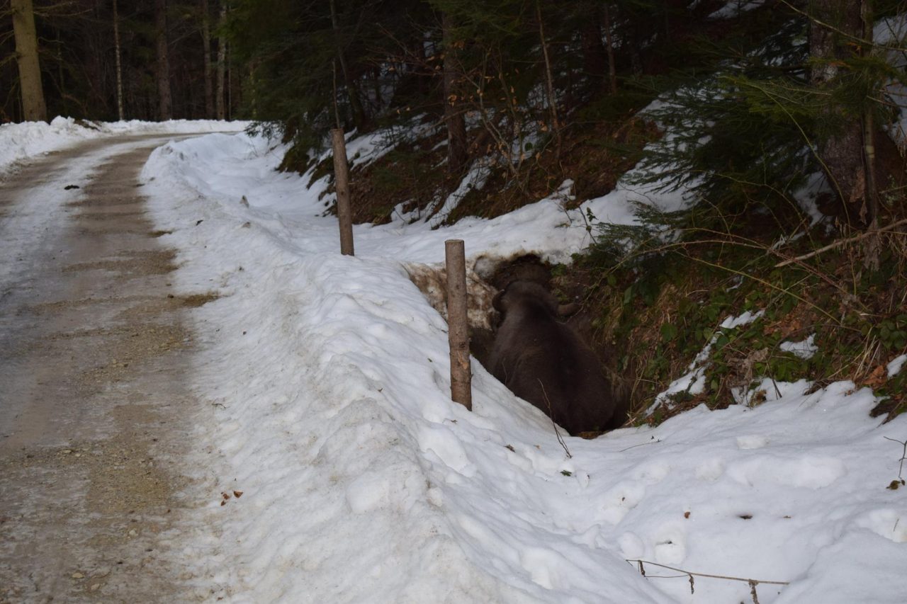 Pe fondul încălzirii vremii și a topirii zăpezii, un zimbru neatent a nimerit în camera de cădere a unui podeț tubular de pe un drum forestier.