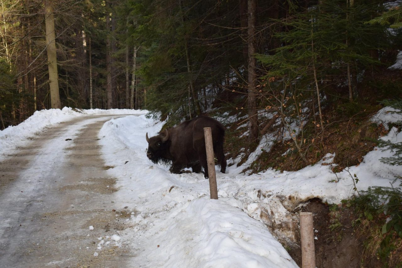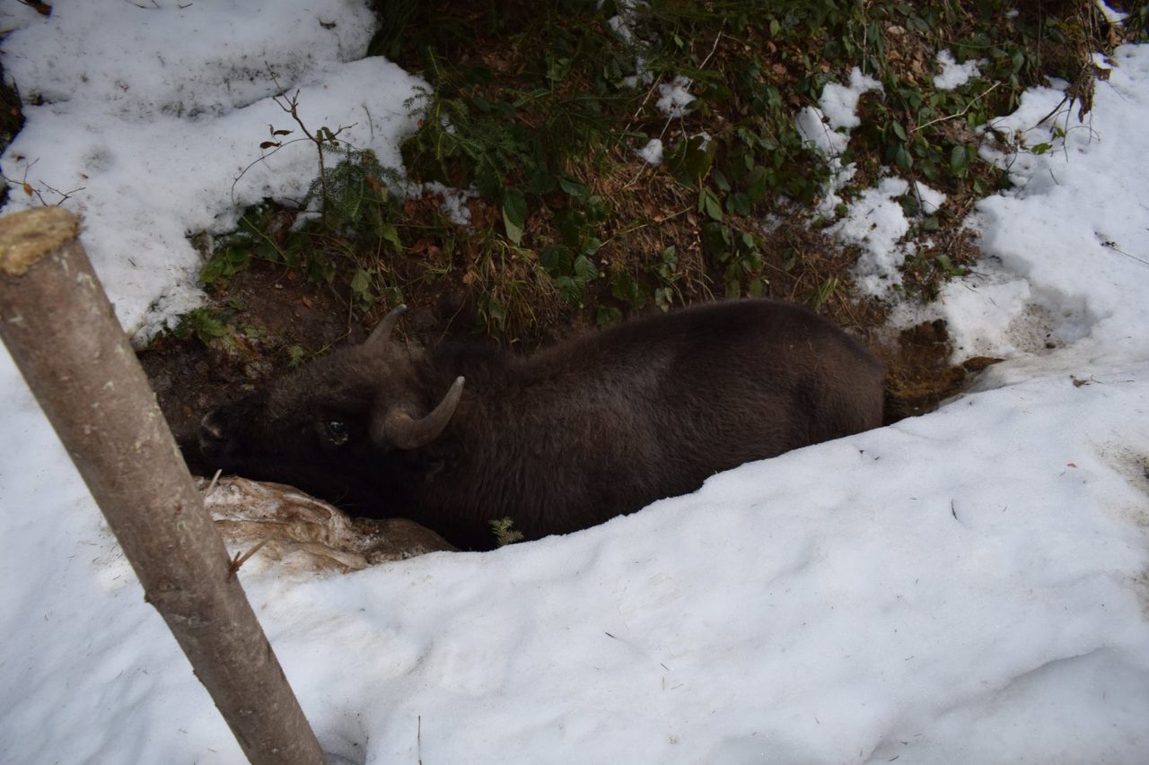 Un zimbru din pădurile din zona Târgu Neamț a fost în pericol de a-și pierde viața, dar a fost salvat de rangerii Administrației Parcului Natural Vânători- Neamț